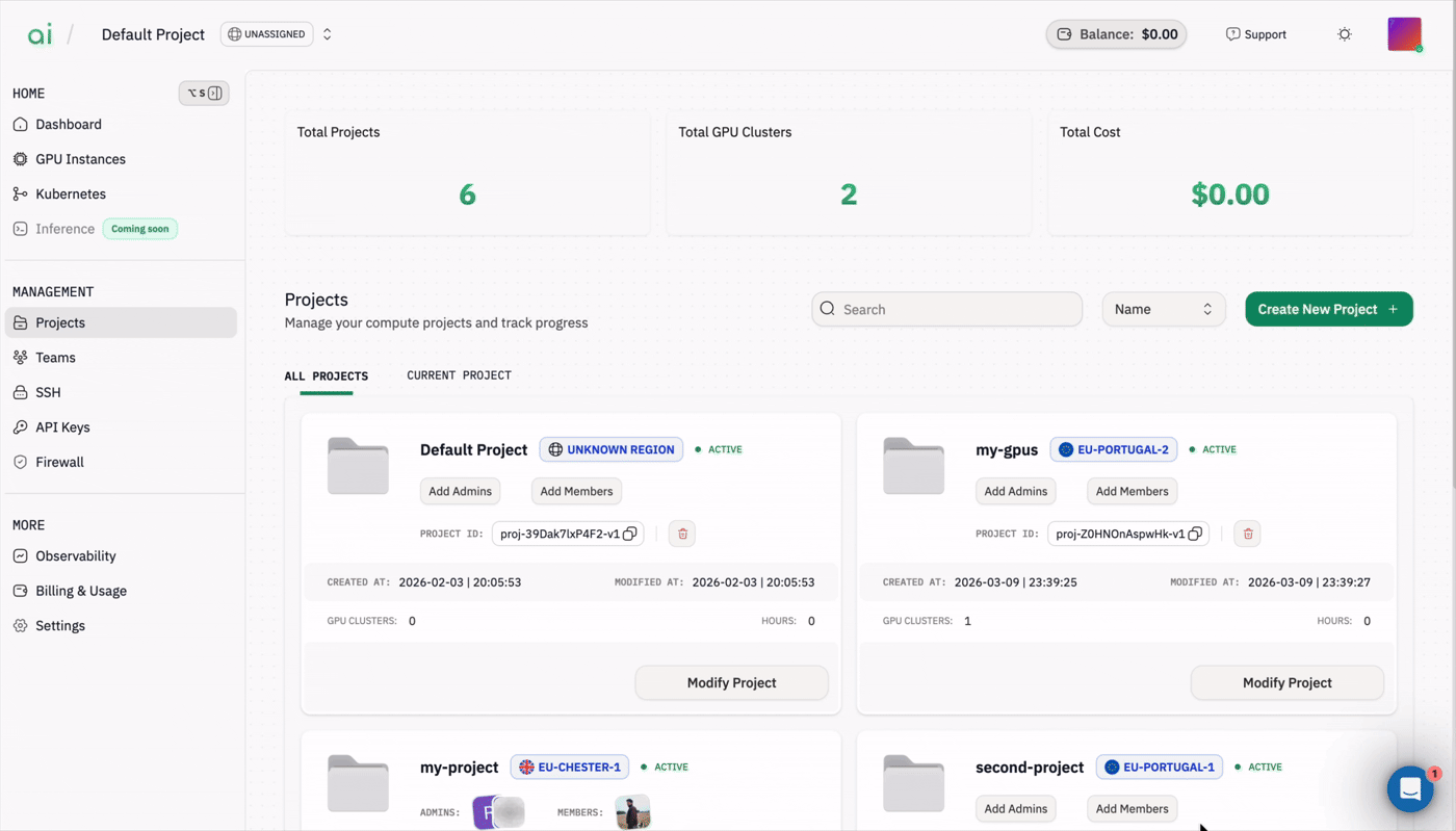 After creation, the project appears in theAll Projects list. You can open it later to manage members and update details.