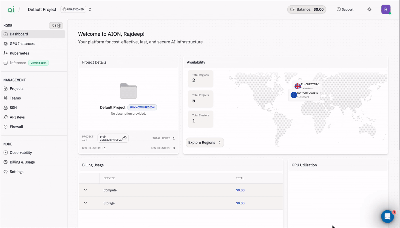 - Select the region / cluster that matches your GPU, memory, and price requirements.